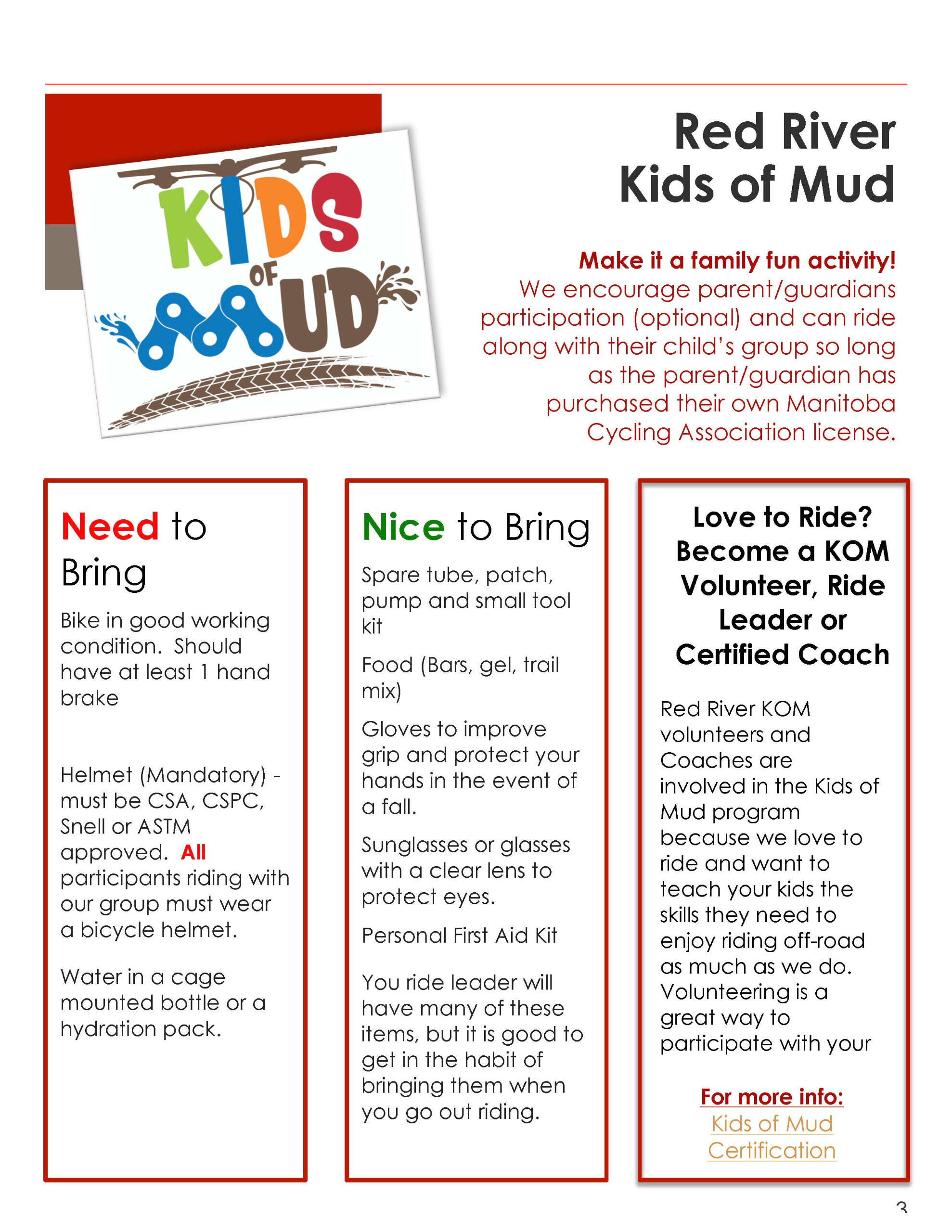 See our Kids of Mud section for benefits provided by a RRCC Kids of Mud membership.